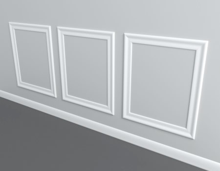 The Wainscot Calculator is a compact utility to calculate and display a Wainscot (picture/frame) layout along a wall. WoodMaster will compute each frame width and lists left/right/center positions for every frame.
